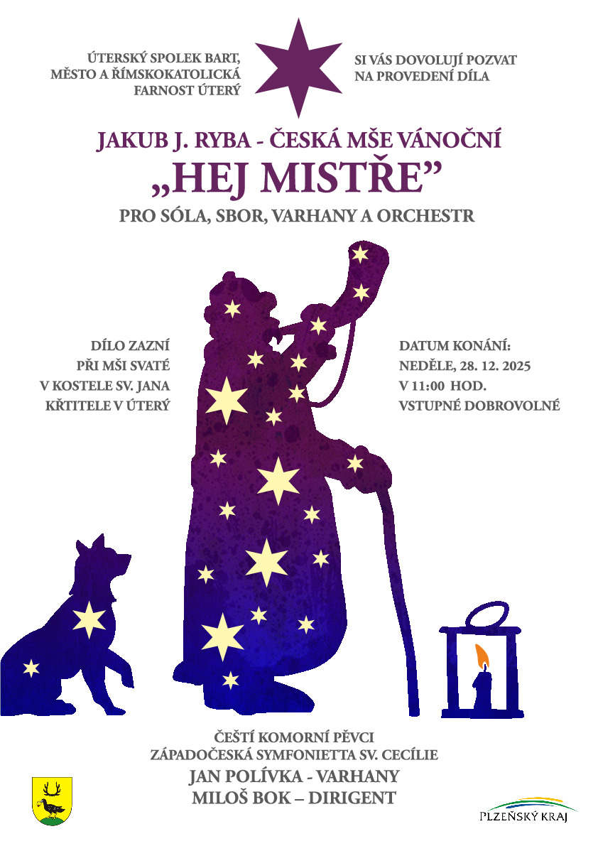 V neděli 28. prosince 2025 od 11:00 bude při bohoslužbě v kostele sv. Jana Křtitele v Úterý provedena Česká mše vánoční Jakuba Jana Ryby. Dirigovat bude Miloš Bok, na varhany hraje Jan Polívka, vystoupí Čeští komorní pěvci a Západočeská symfonietta sv. Cecílie. Provedení díla podpořily Plzeňský kraj, Město Úterý a Římskokatolická farnost Klášter Teplá.